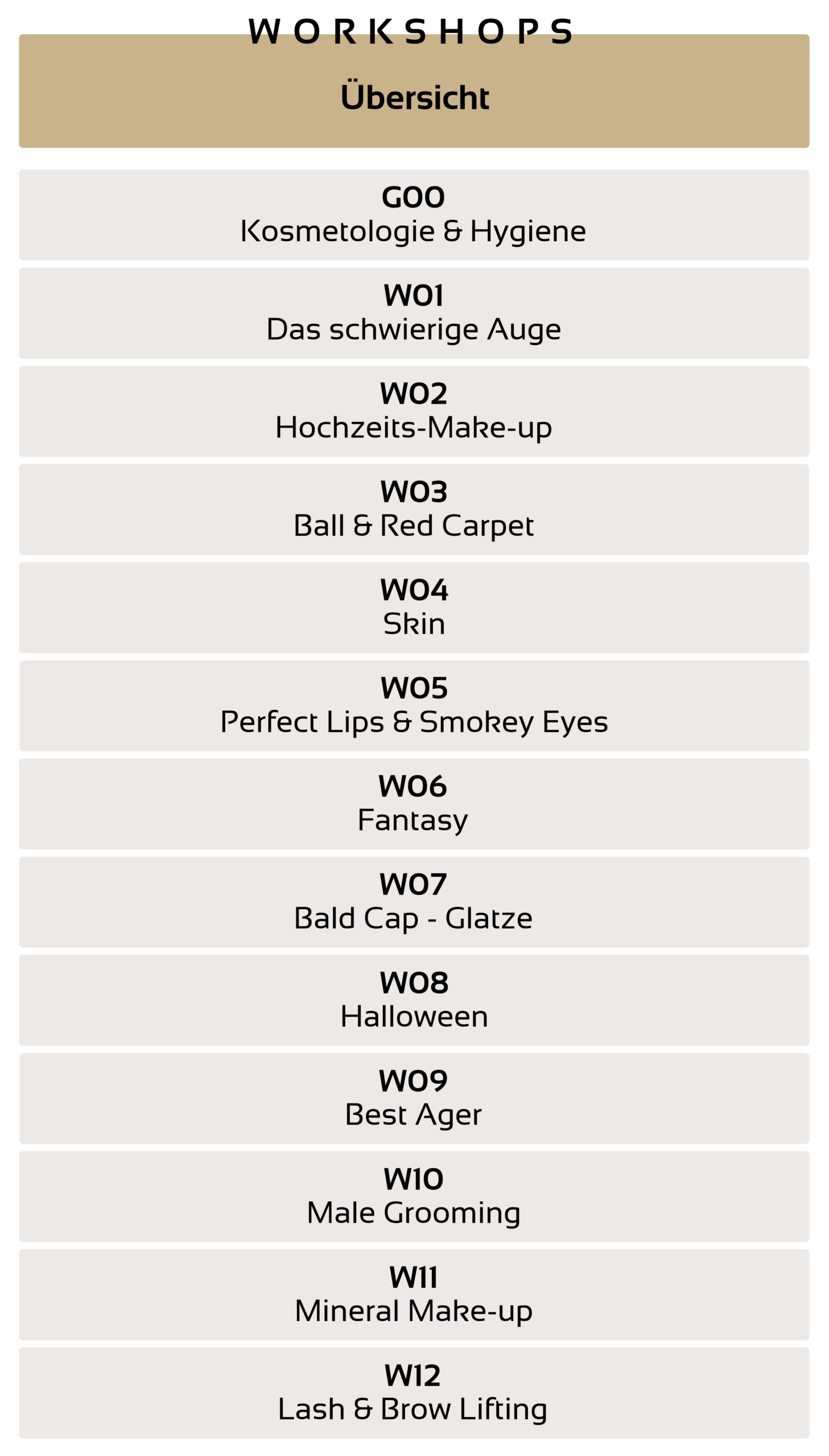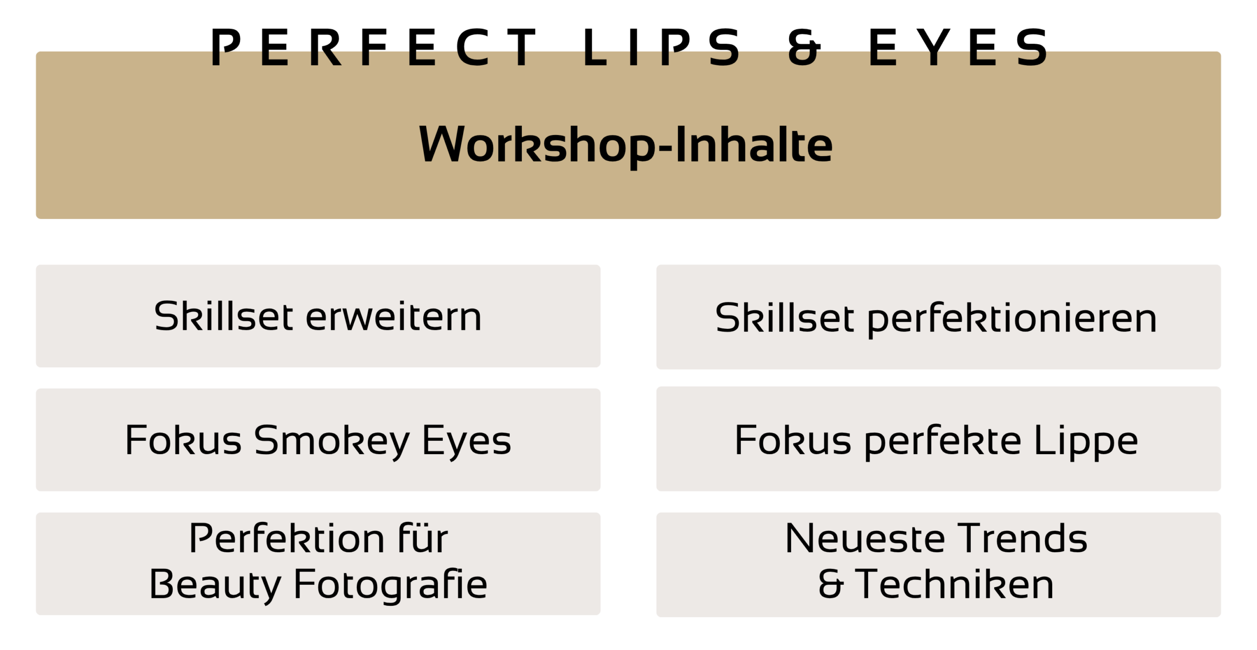Als ausgebildete Visagist:in wählst du aus einem vielseitigen Pool an Workshops genau die Themen, die dich weiterbringen.