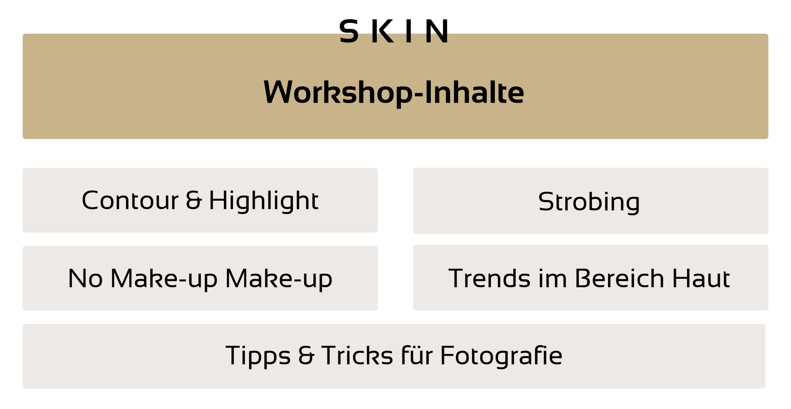 In diesem Workshop dreht sich alles um modernes Skin-Know-how. Wir zeigen dir wie du natürliche No-Make-up-Finishes bis hin zu ausdrucksstarken High-Fashion-Styles erstellen kannst.